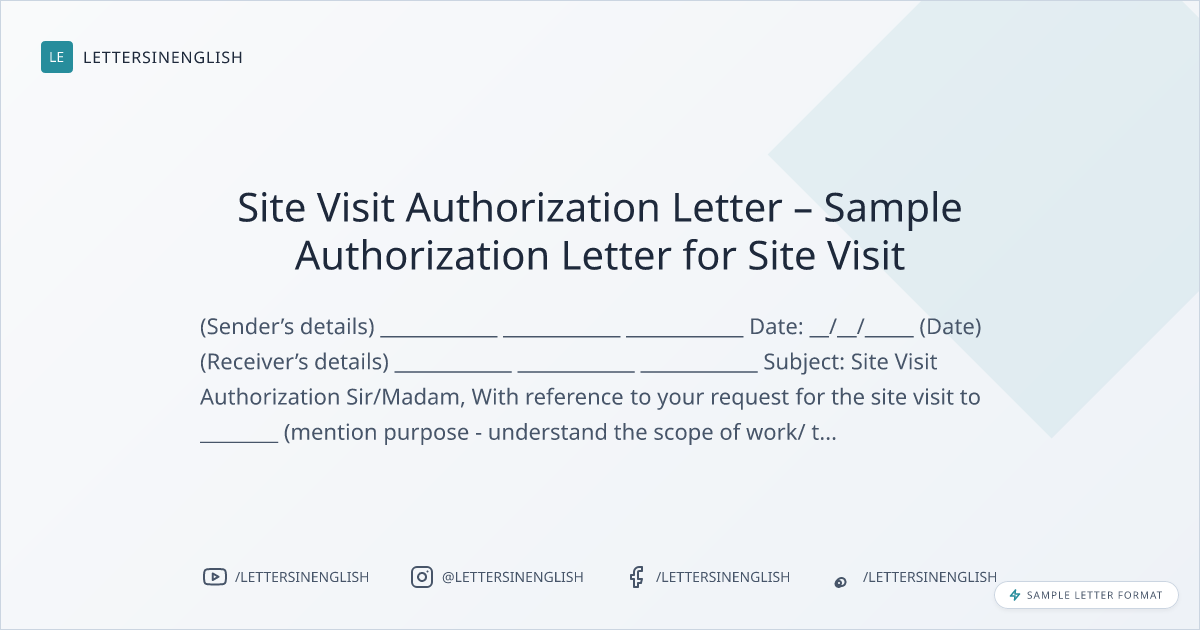 Site Visit Authorization Letter – Sample Authorization Letter for Site Visit