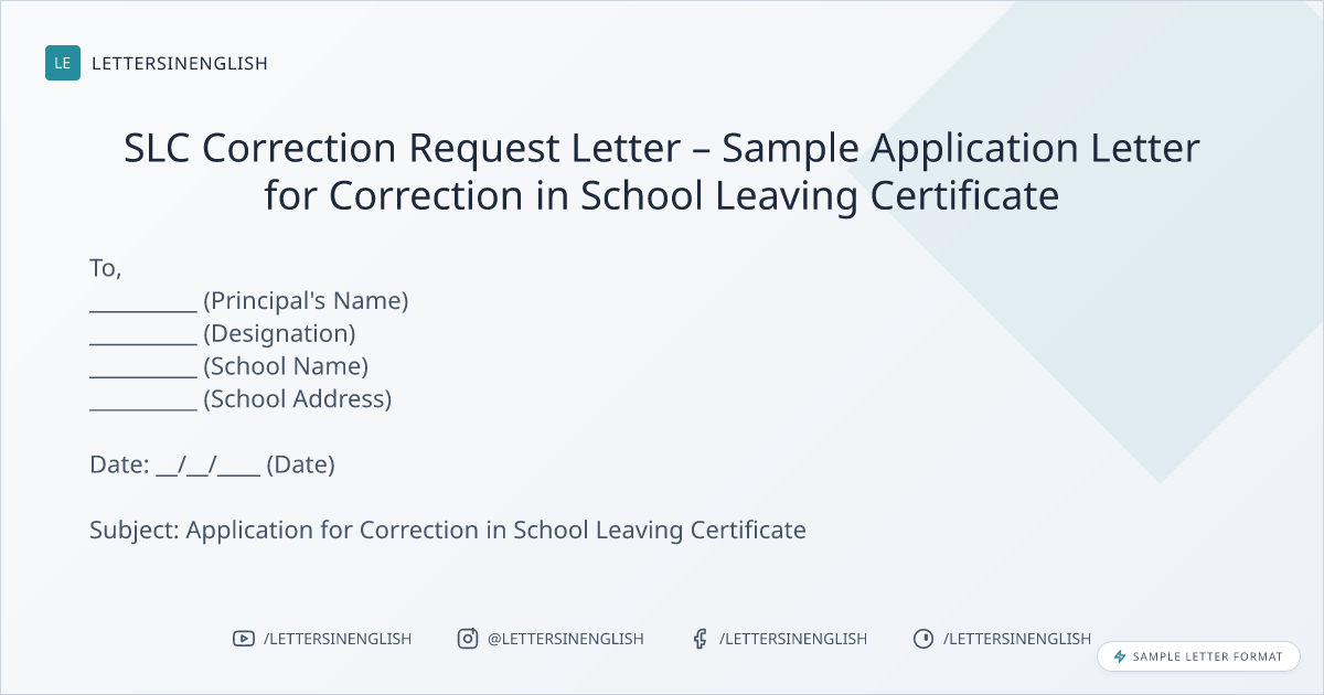 SLC Correction Request Letter – Sample Application Letter for Correction in School Leaving Certificate