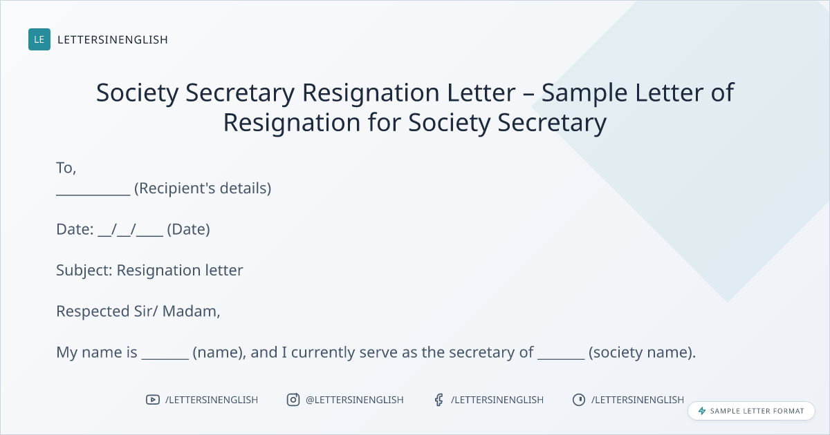 Sample Letter of Resignation for Society Secretary