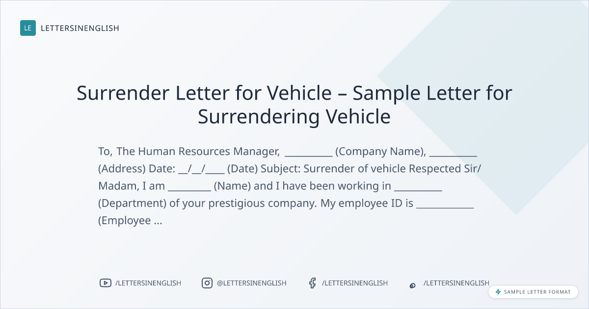 Surrender Letter for Vehicle – Sample Letter for Surrendering Vehicle