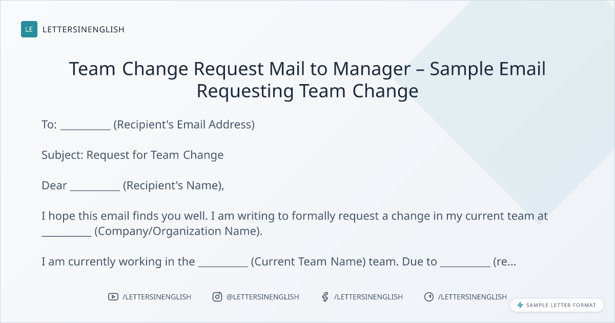 Team Change Request Mail to Manager – Sample Email Requesting Team Change