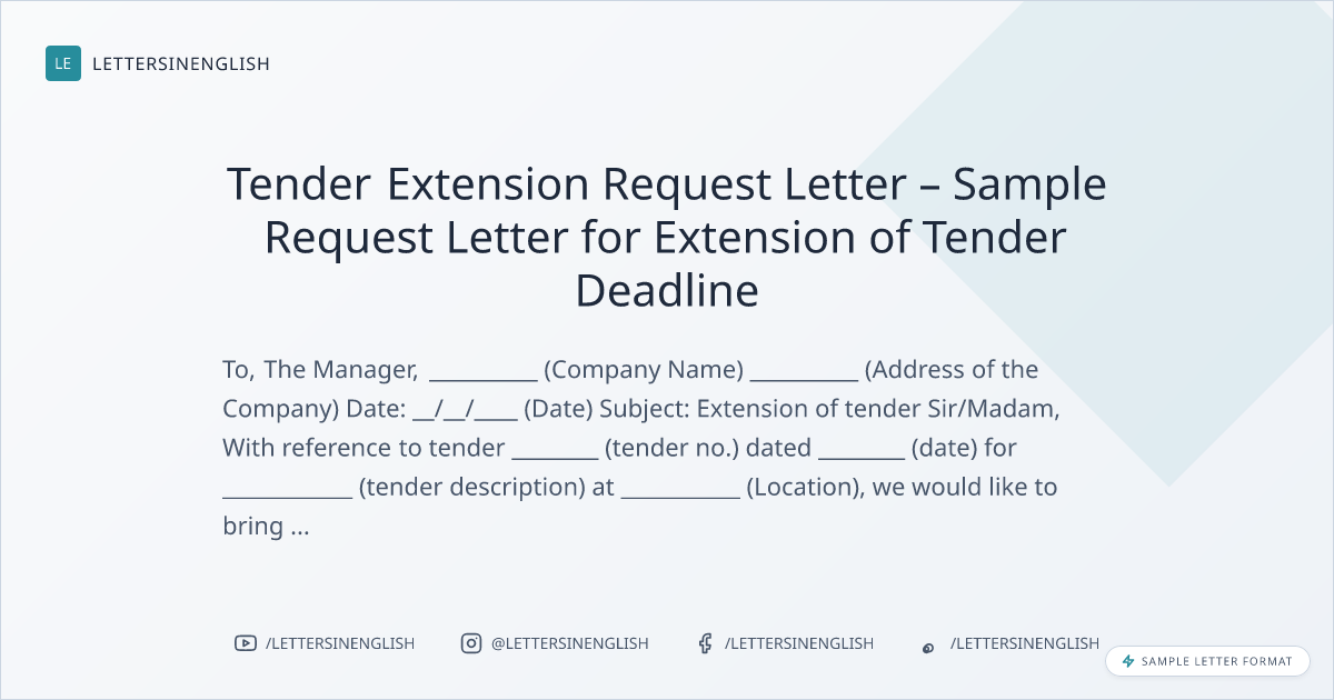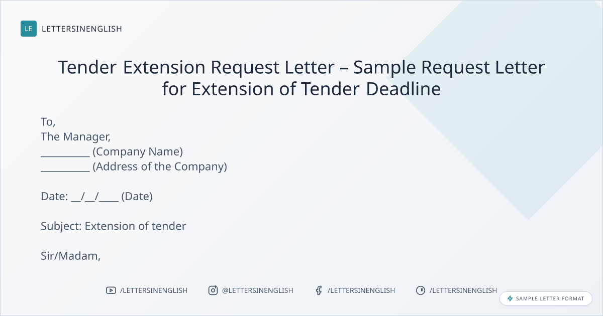 Tender Extension Request Letter – Sample Request Letter for Extension of Tender Deadline