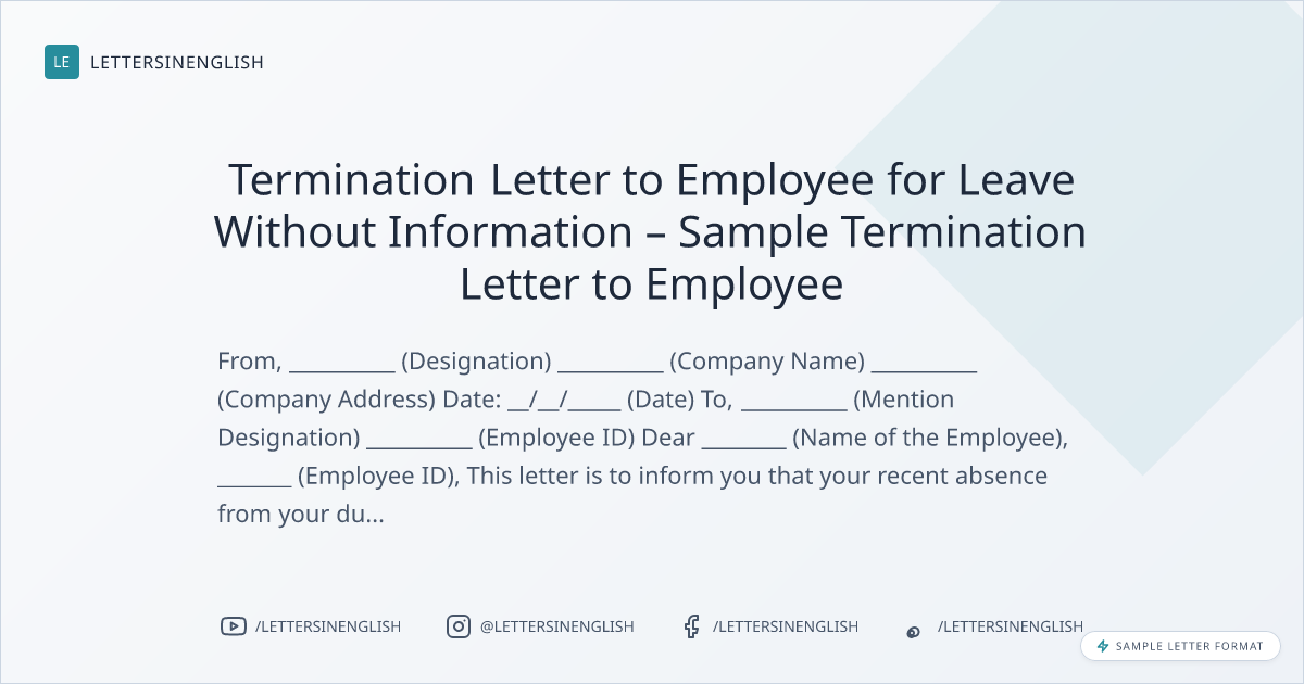 Termination Letter to Employee for Leave Without Information – Sample Termination Letter to Employee