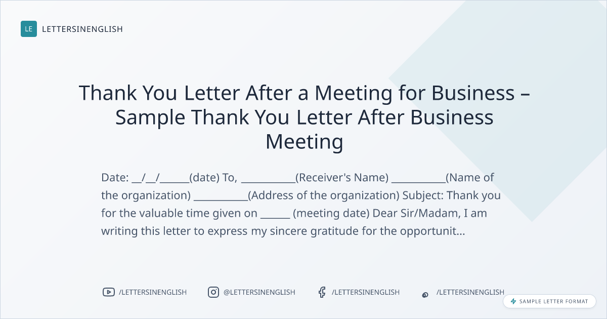 Thank You Letter After a Meeting for Business – Sample Thank You Letter After Business Meeting