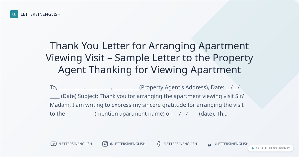 Thank You Letter for Arranging Apartment Viewing Visit – Sample Letter to the Property Agent Thanking for Viewing Apartment