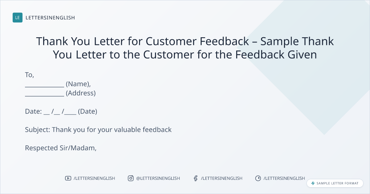 Thank You Letter for Customer Feedback – Sample Thank You Letter to the Customer for the Feedback Given