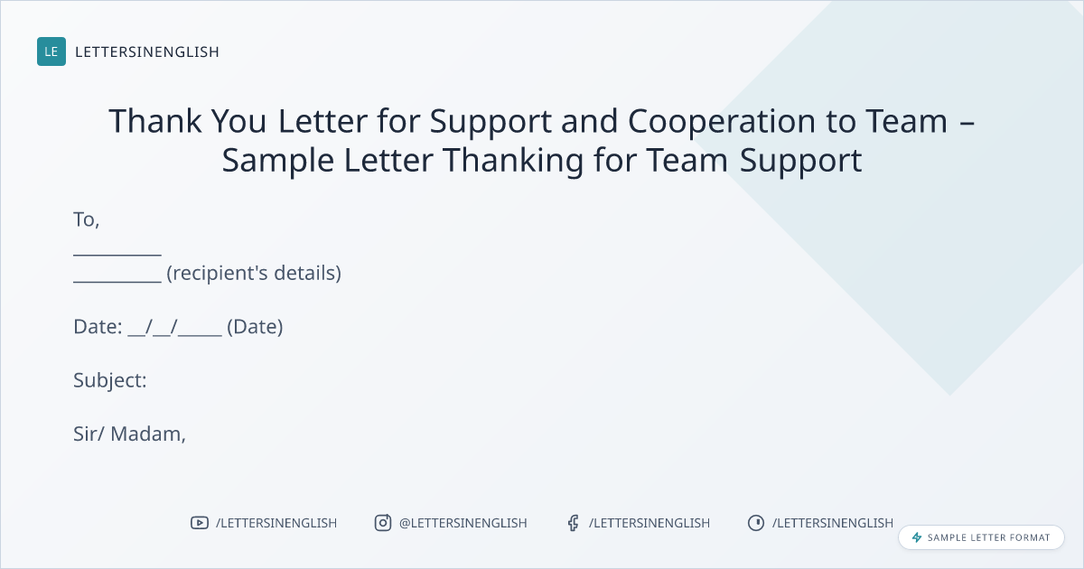 Thank You Letter for Support and Cooperation to Team – Sample Letter Thanking for Team Support
