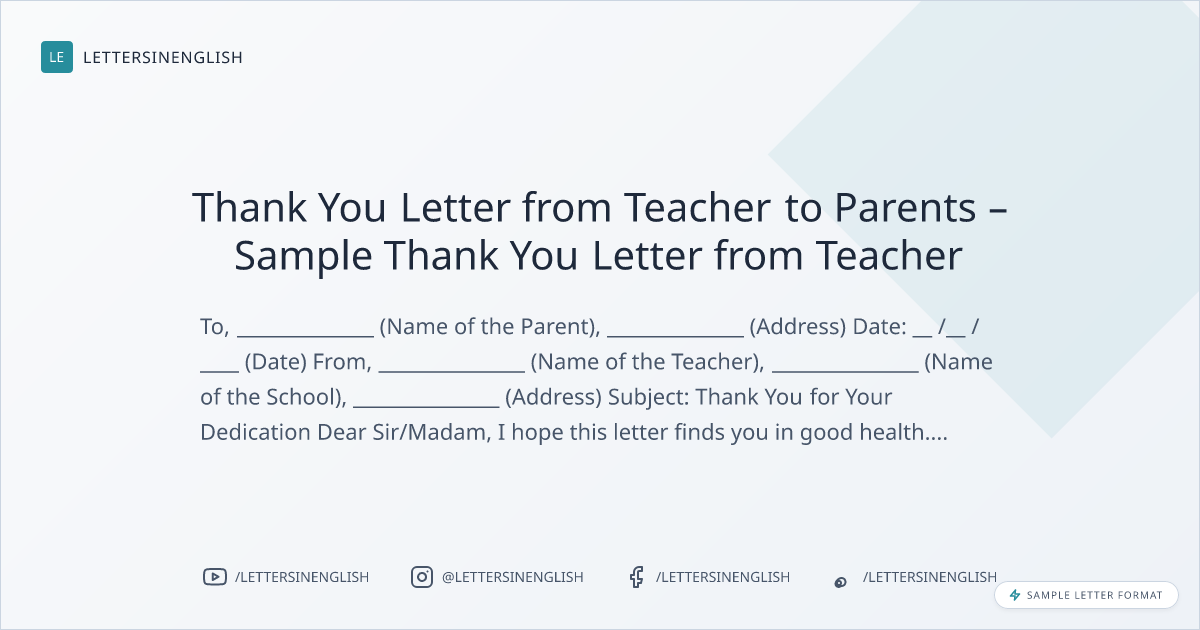 Thank You Letter from Teacher to Parents – Sample Thank You Letter from Teacher