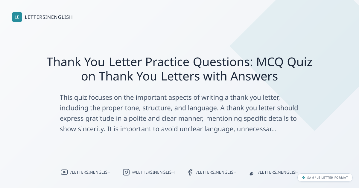 Thank You Letter Practice Questions: MCQ Quiz on Thank You Letters with Answers