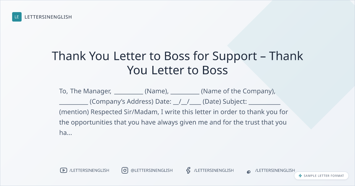Thank You Letter to Boss for Support – Thank You Letter to Boss