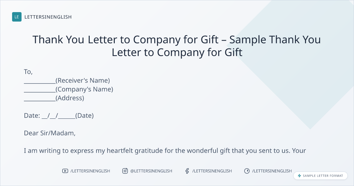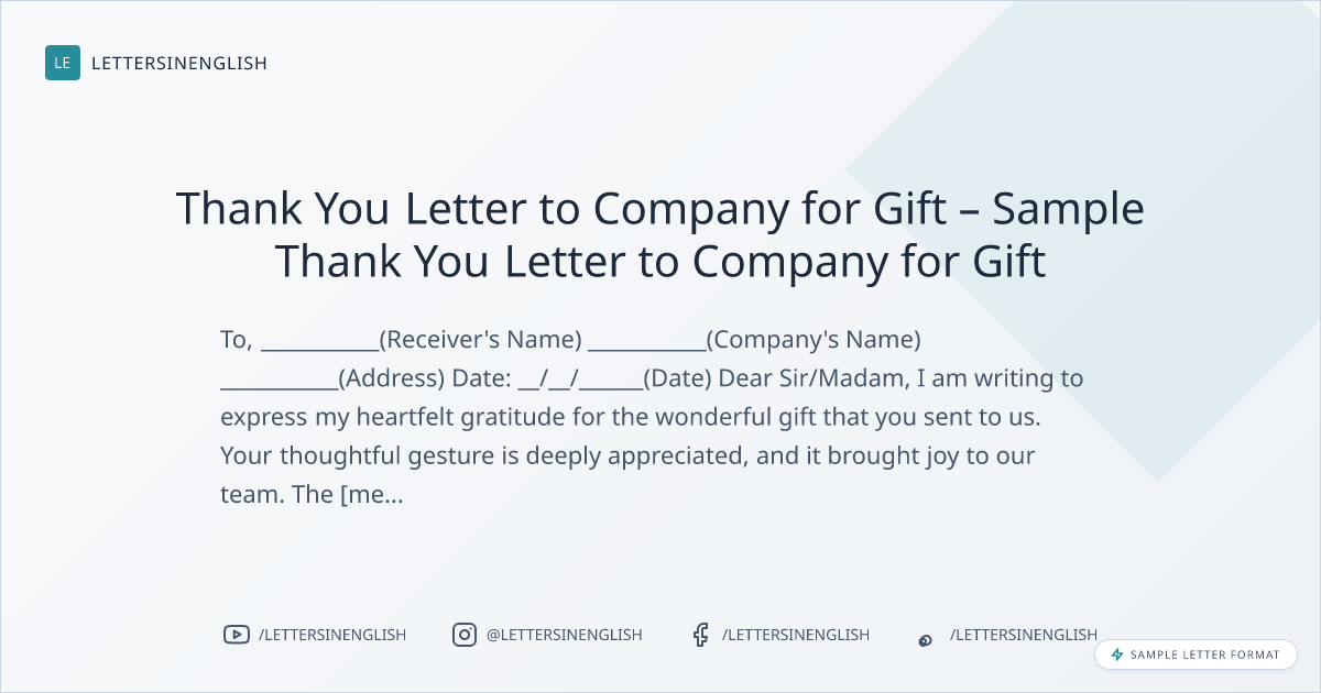 Thank You Letter to Company for Gift – Sample Thank You Letter to Company for Gift