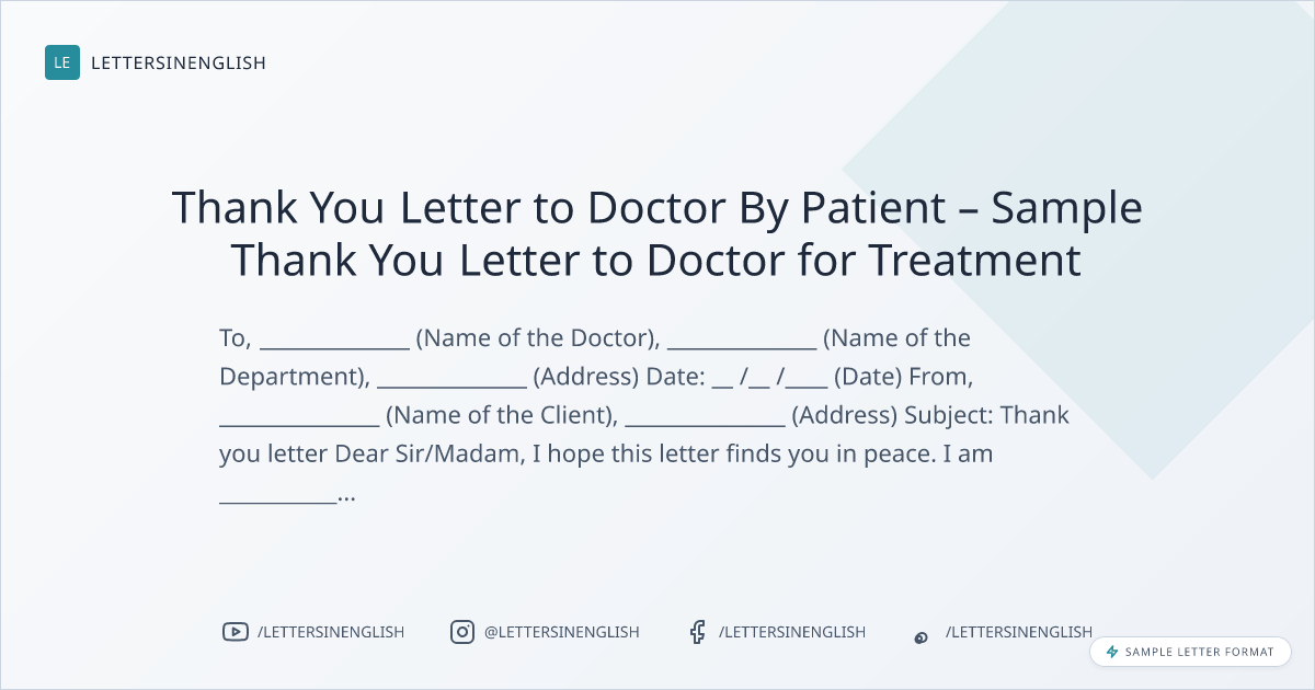 Thank You Letter to Doctor By Patient – Sample Thank You Letter to Doctor for Treatment