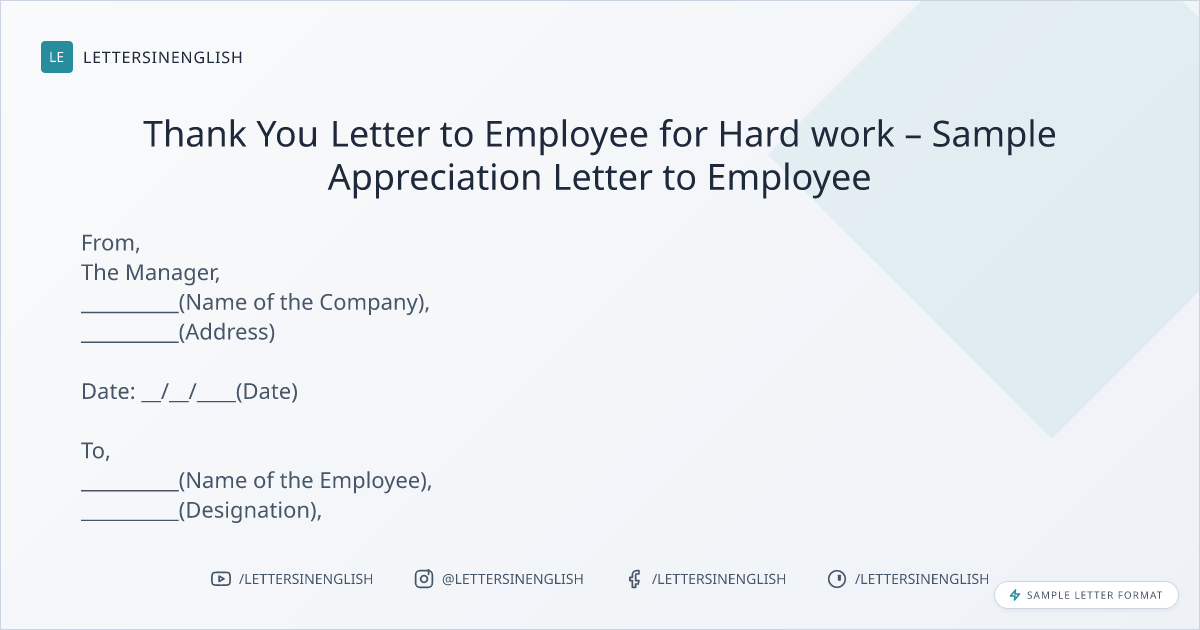 Thank You Letter to Employee for Hard work – Sample Appreciation Letter to Employee