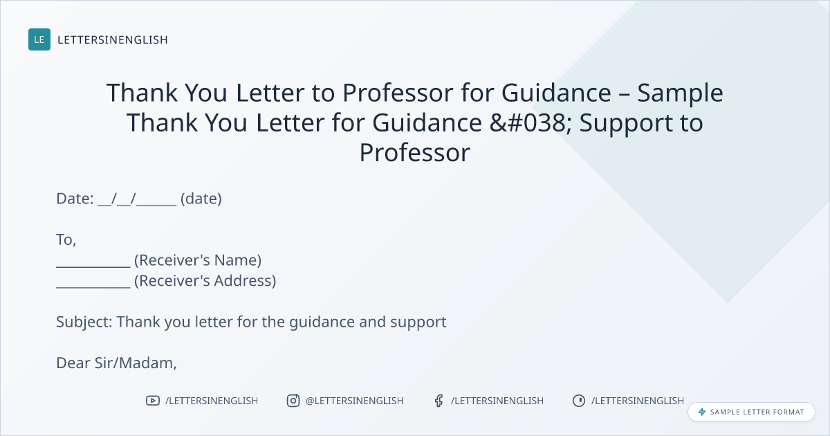 Thank You Letter to Professor for Guidance – Sample Thank You Letter for Guidance & Support to Professor