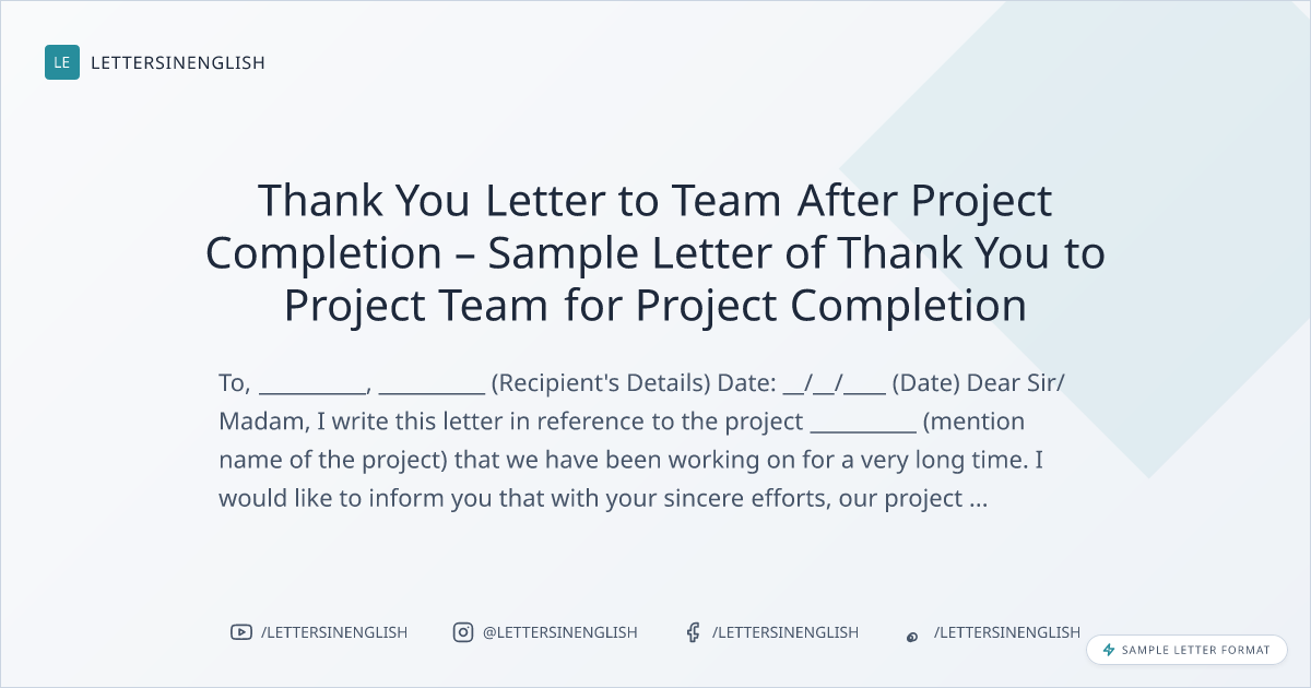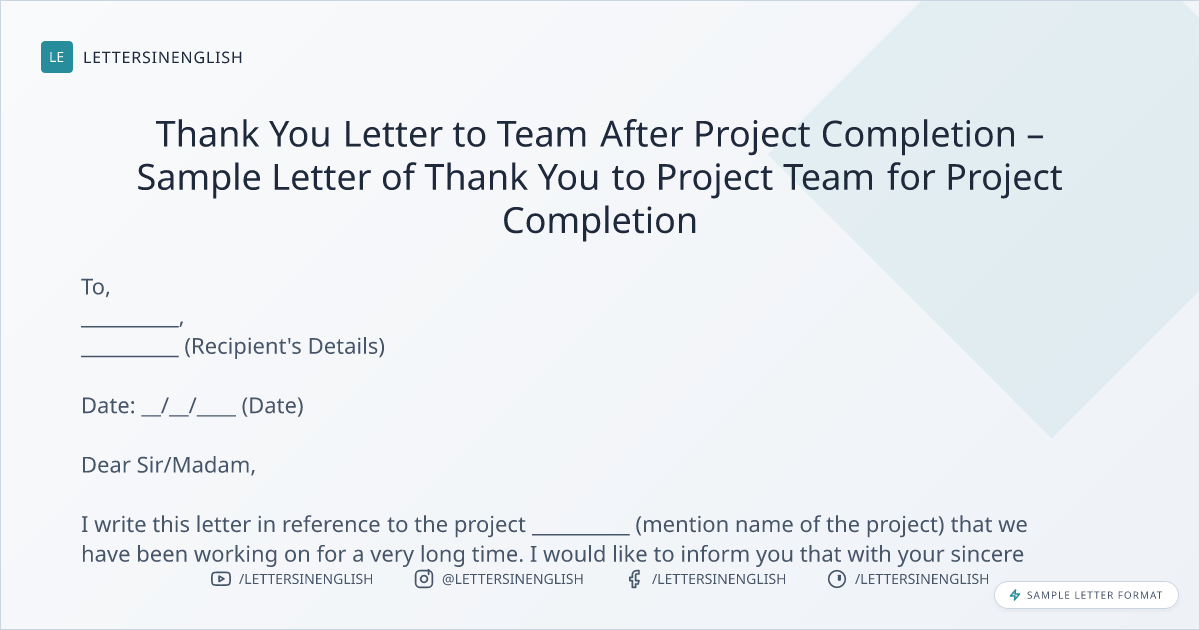 Thank You Letter to Team After Project Completion – Sample Letter of Thank You to Project Team for Project Completion