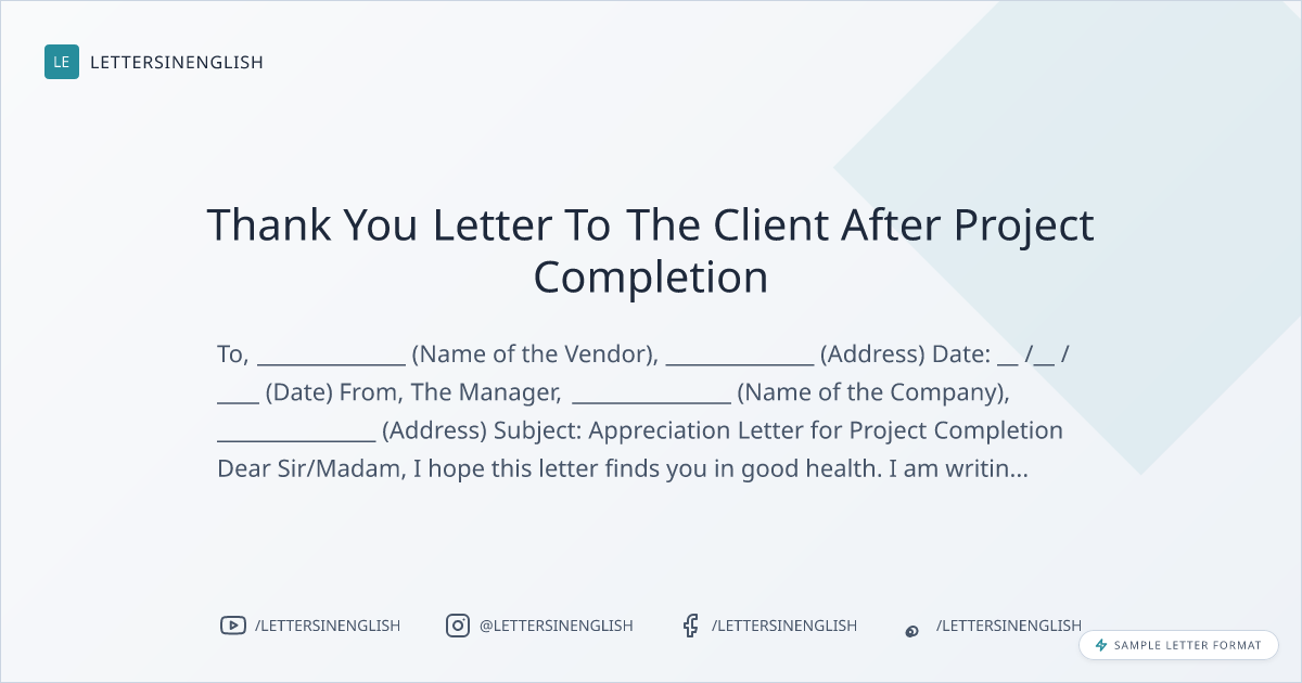 Thank You Letter To The Client After Project Completion