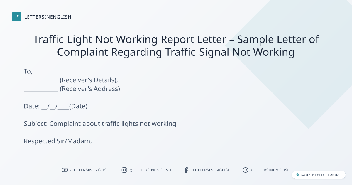 Traffic Light Not Working Report Letter – Sample Letter of Complaint Regarding Traffic Signal Not Working