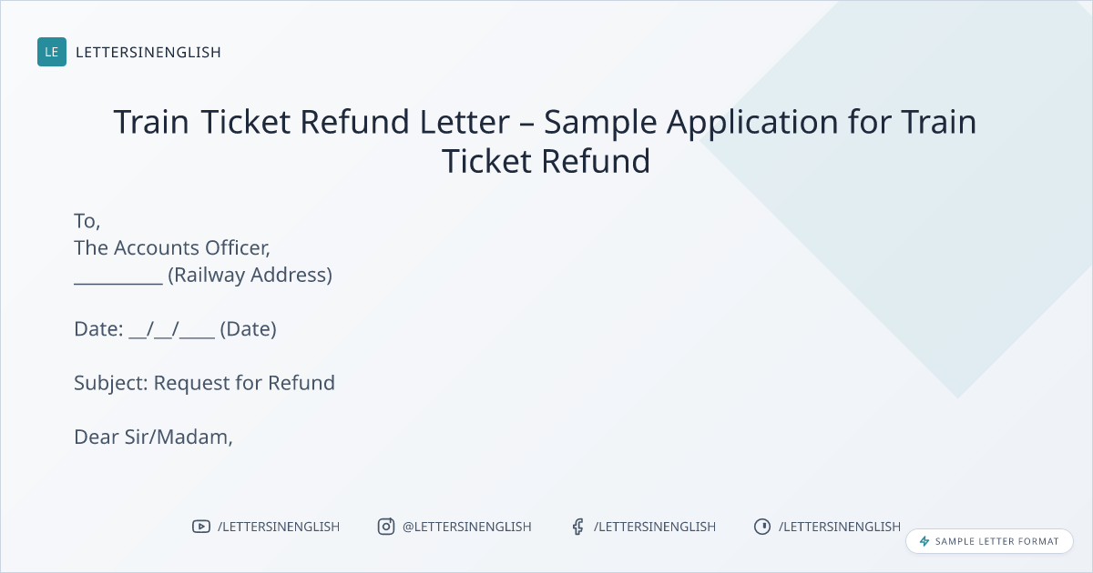 Train Ticket Refund Letter – Sample Application for Train Ticket Refund