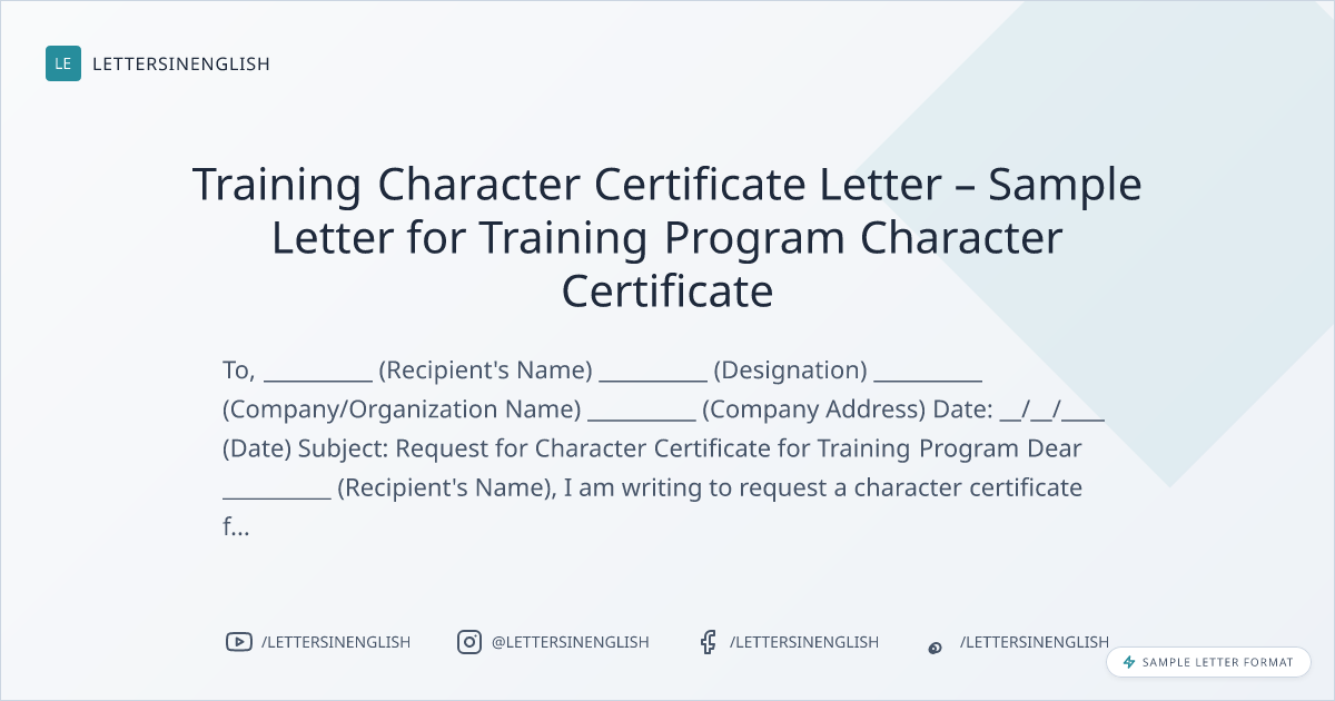 Training Character Certificate Letter – Sample Letter for Training Program Character Certificate