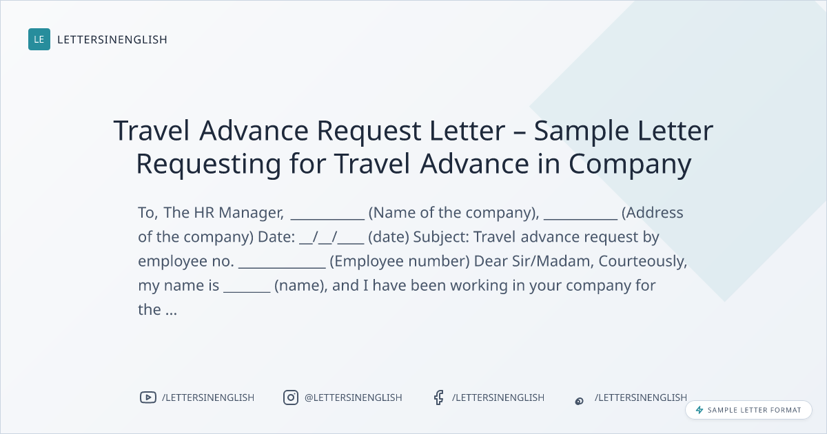 Travel Advance Request Letter – Sample Letter Requesting for Travel Advance in Company