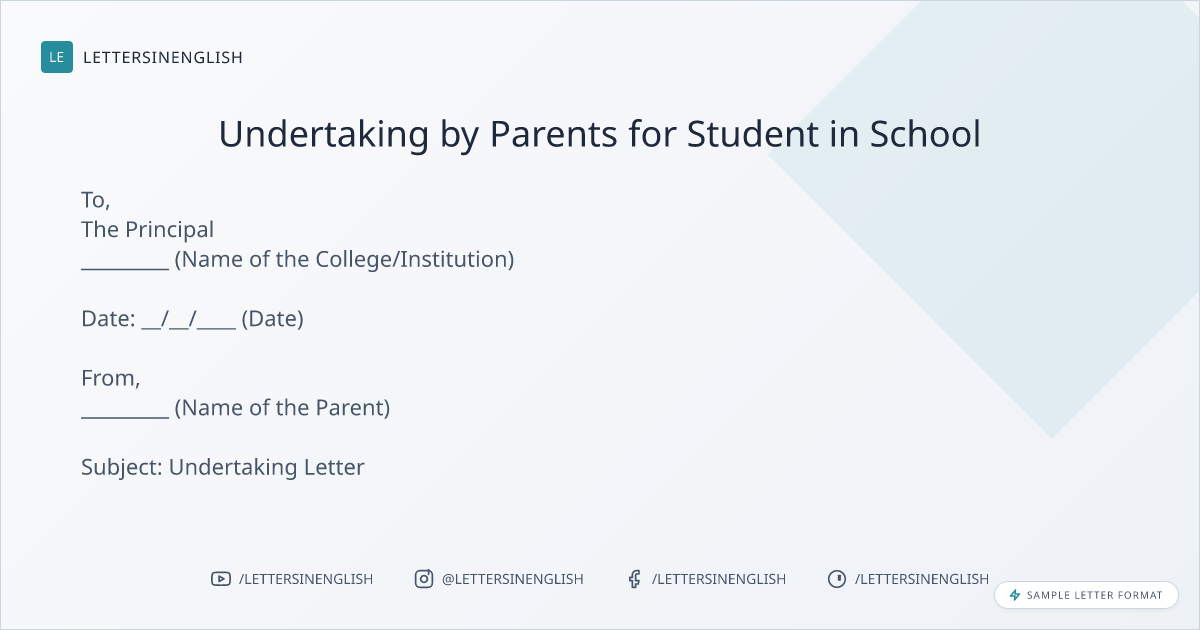 Undertaking Letter by Parents for Student in School