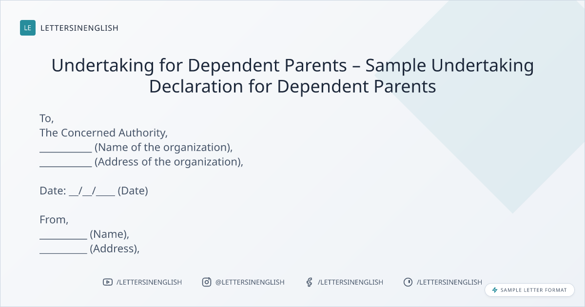 Sample Undertaking Letter Declaration for Dependent Parents