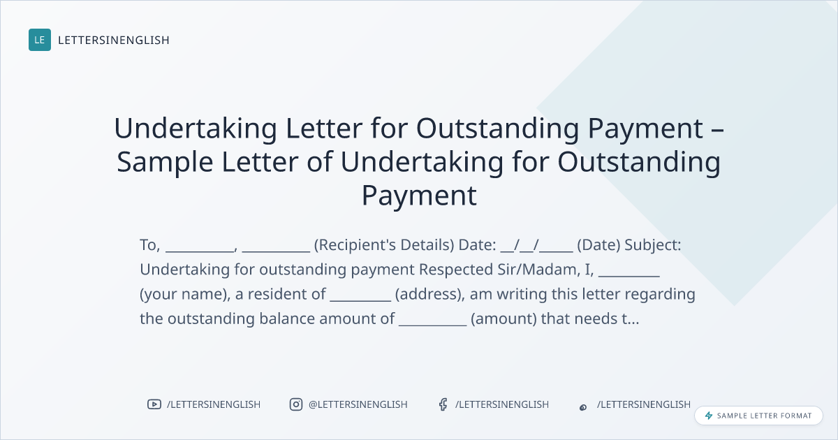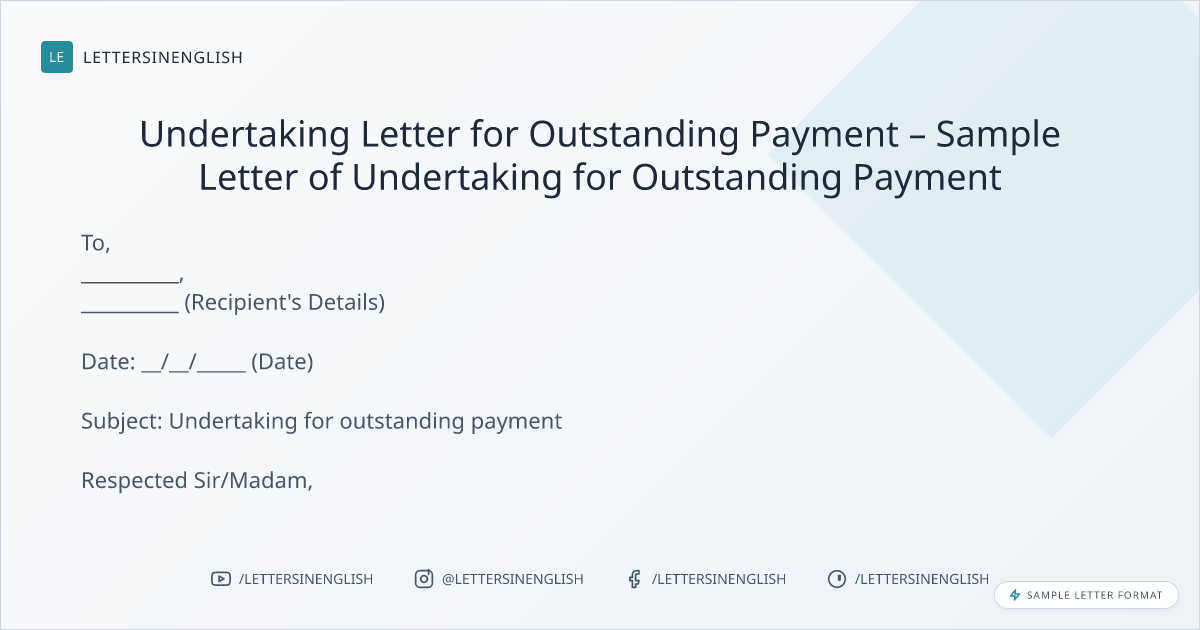 Undertaking Letter for Outstanding Payment – Sample Letter of Undertaking for Outstanding Payment