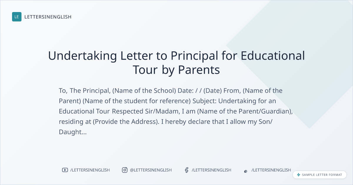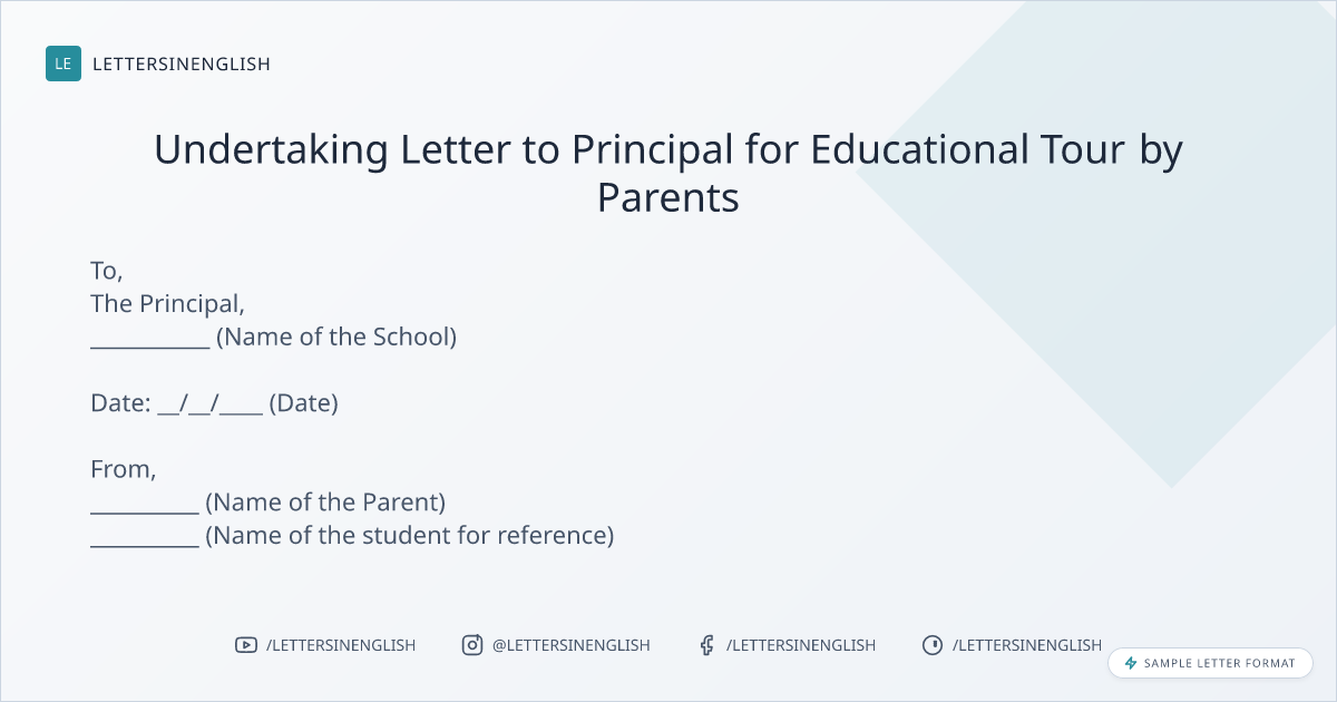 Sample Undertaking Letter to Principal for Educational Tour