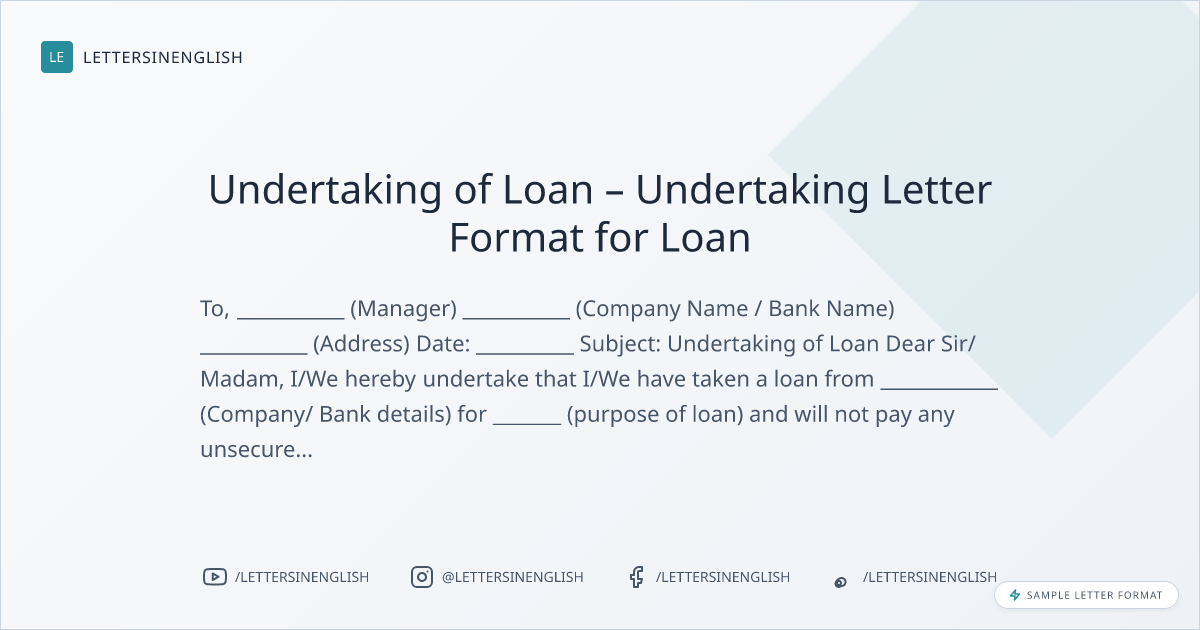 Undertaking of Loan – Undertaking Letter Format for Loan