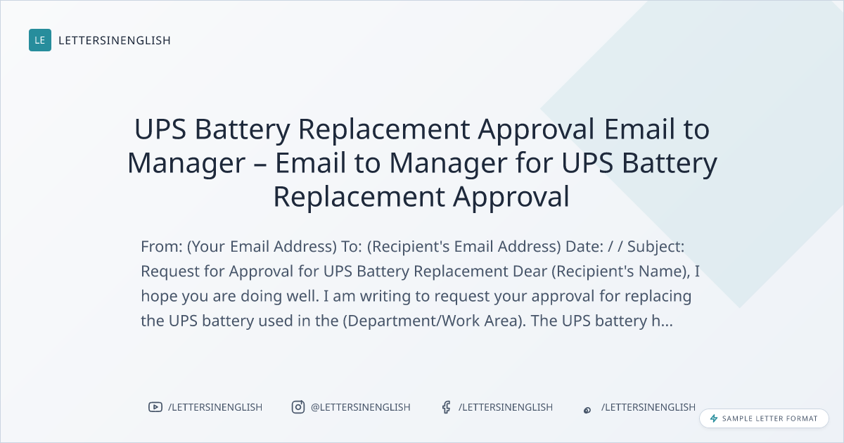 UPS Battery Replacement Approval Email – Sample Email Asking Manager for Replacement Permission