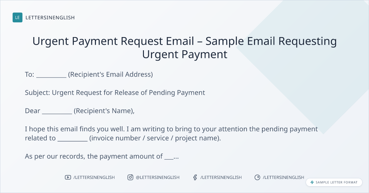 Urgent Payment Request Email – Sample Email Requesting Urgent Payment
