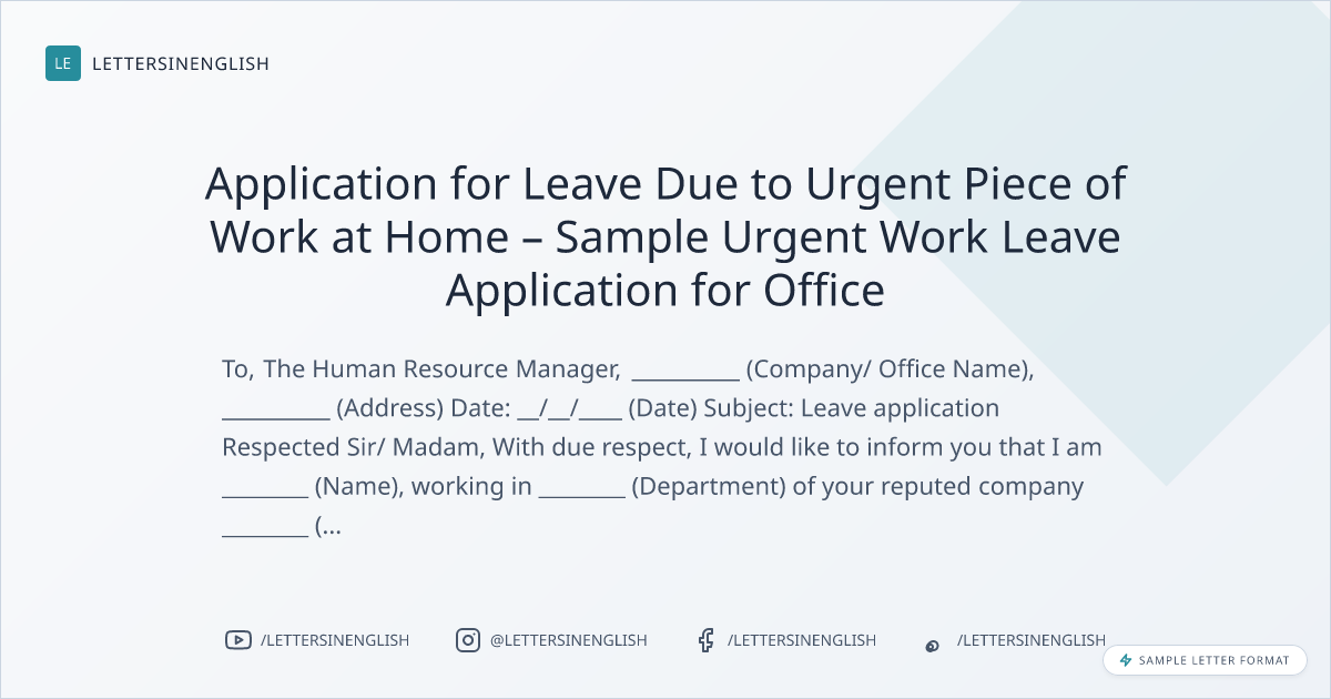 Application for Leave Due to Urgent Piece of Work at Home – Sample Urgent Work Leave Application for Office