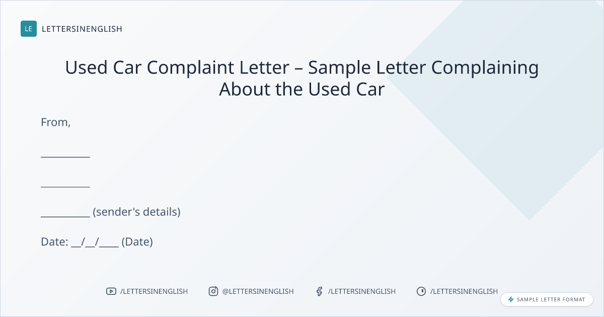 Used Car Complaint Letter – Sample Letter Complaining About the Used Car