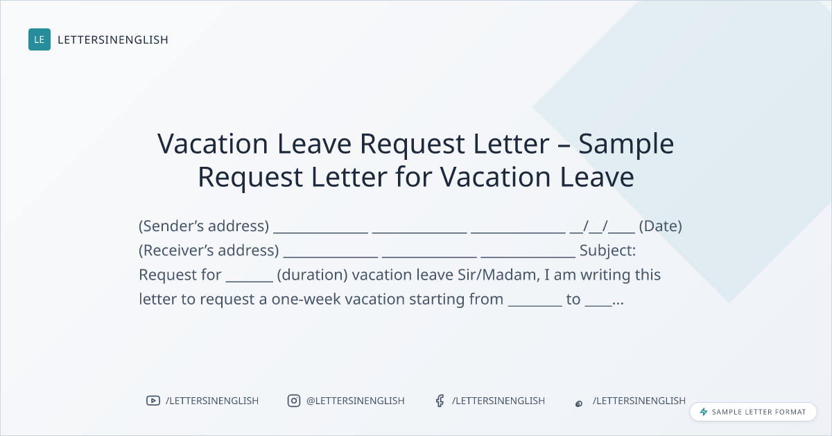 Vacation Leave Request Letter – Sample Request Letter for Vacation Leave