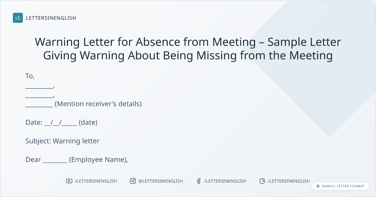 Sample Warning Letter for Absence from Meeting