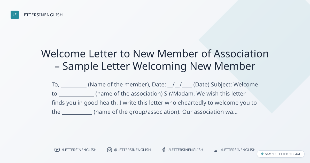 Welcome Letter to New Member of Association – Sample Letter Welcoming New Member