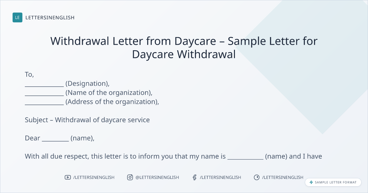 Withdrawal Letter from Daycare – Sample Letter for Daycare Withdrawal