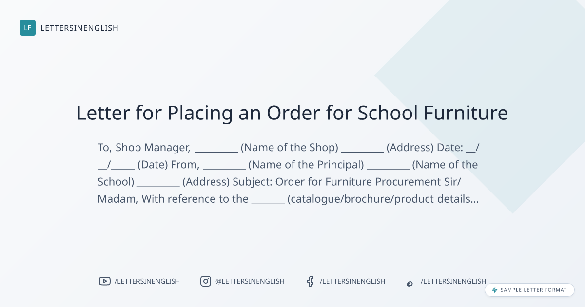 Letter for Placing an Order for School Furniture
