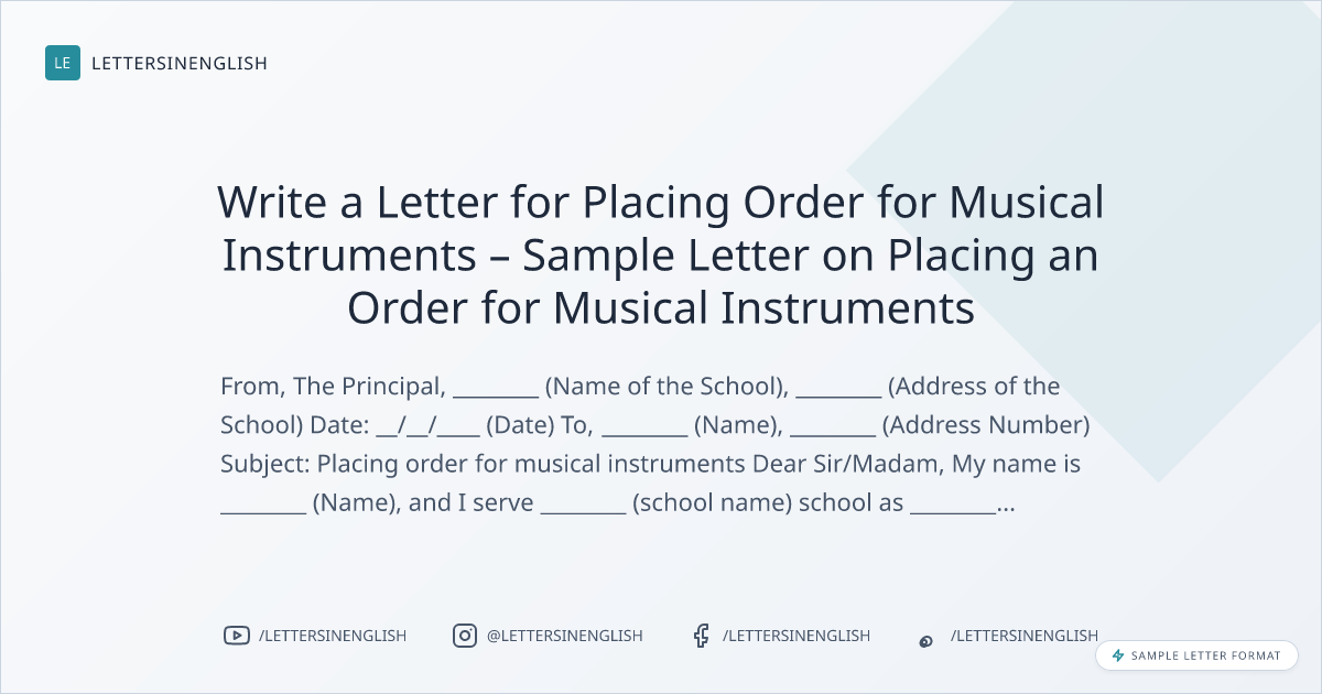 Write a Letter for Placing Order for Musical Instruments – Sample Letter on Placing an Order for Musical Instruments