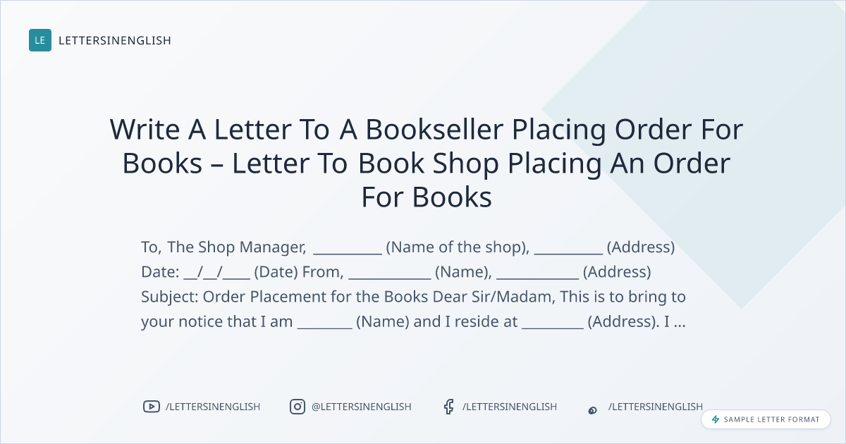 Write A Letter To A Bookseller Placing Order For Books – Letter To Book Shop Placing An Order For Books