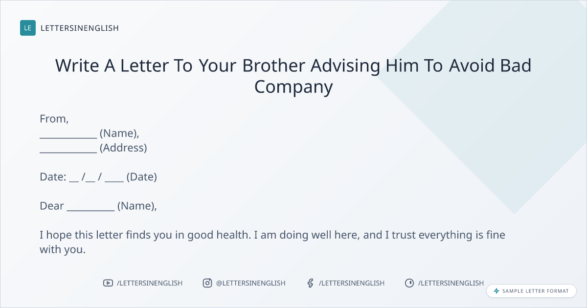 Sample Letter To Your Brother Advising Him To Avoid Bad Company