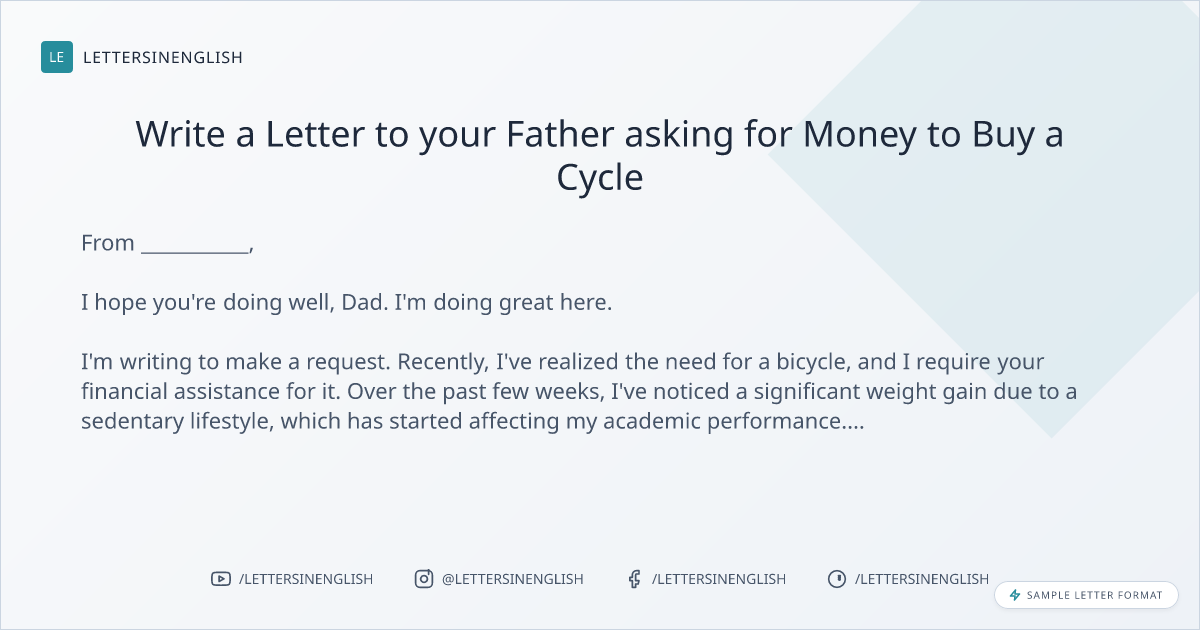 Sample Letter to your Father asking for Money to Buy a Cycle