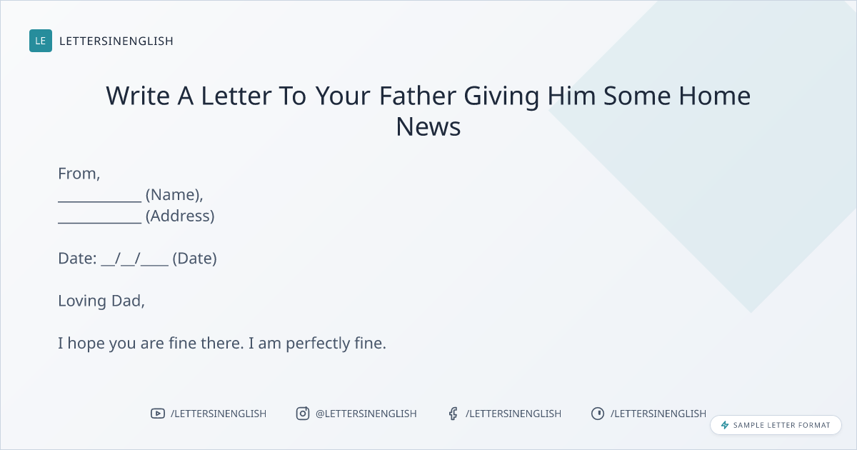 Write A Letter To Your Father Giving Him Some Home News
