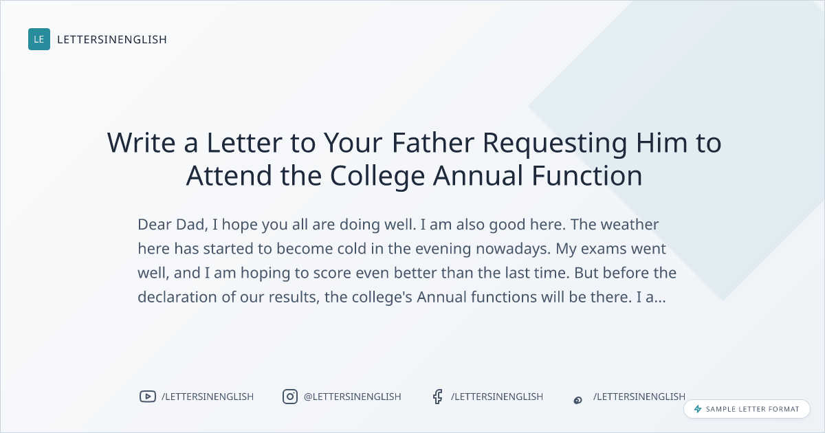 Sample Letter to Your Father Requesting Him to Attend the College Annual Function