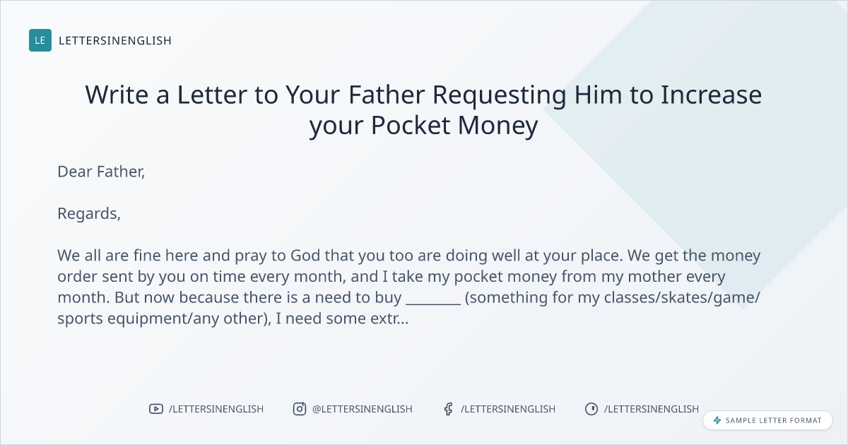 Sample Letter to Your Father Requesting Him to Increase your Pocket Money