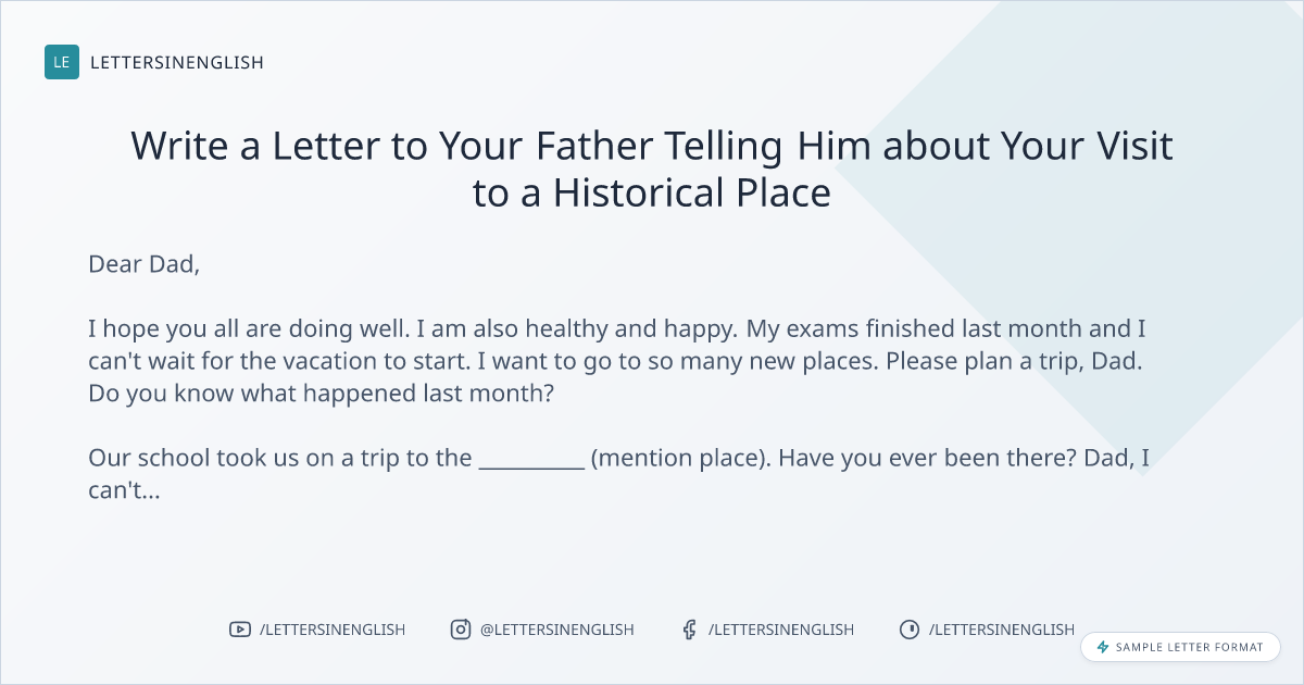 Write a Letter to Your Father Telling Him about Your Visit to a Historical Place