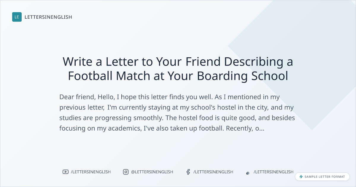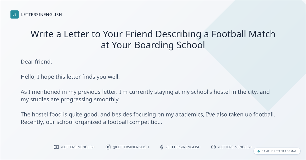Sample Letter to Your Friend Describing a Football Match at Your Boarding School