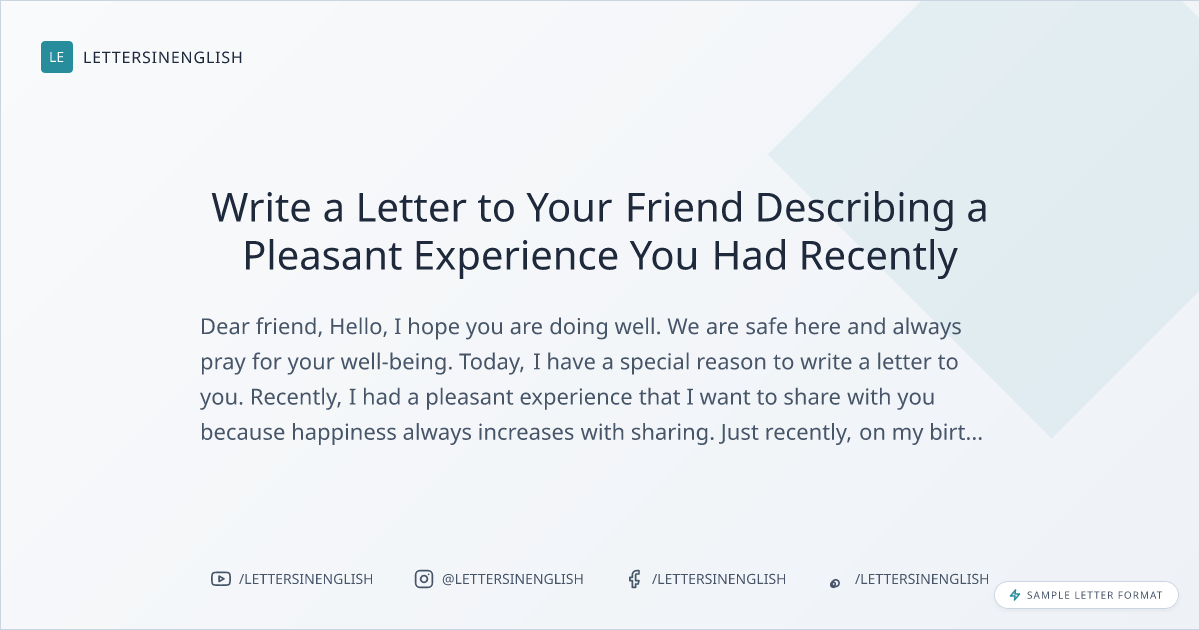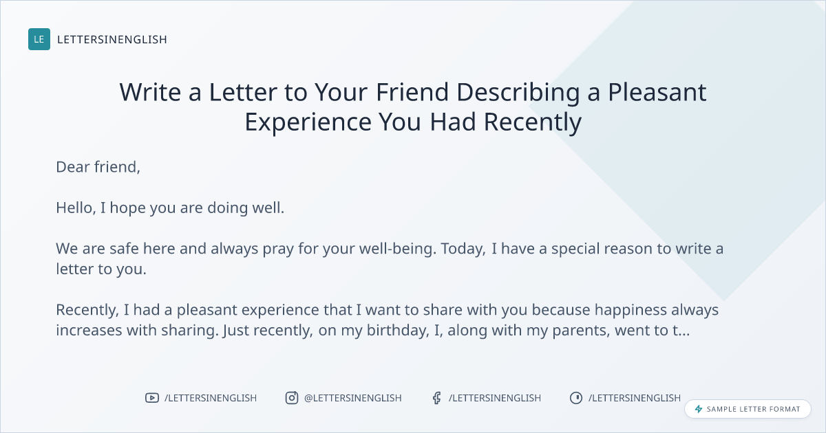Write a Letter to Your Friend Describing a Pleasant Experience You Had Recently
