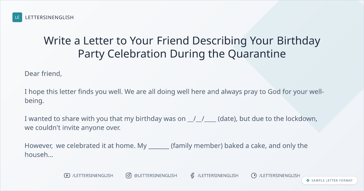 Write a Letter to Your Friend Describing Your Birthday Party Celebration During the Quarantine