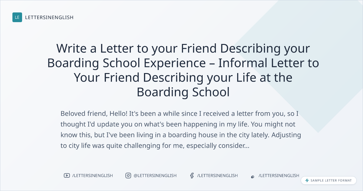 Sample Letter to your Friend Describing your Boarding School Experience